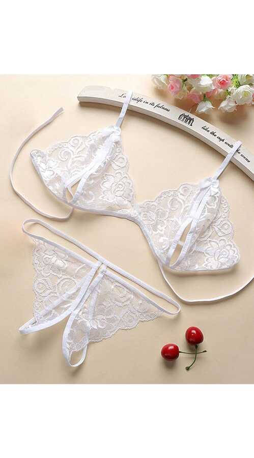 Ninis White Lacy Fantasy Brassiere and Panties Set